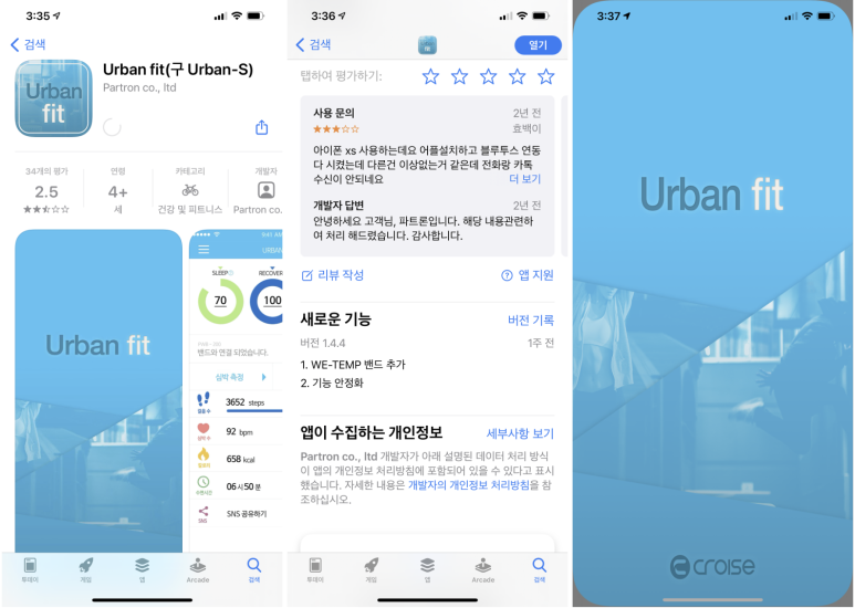저는 아이폰을 사용하니까 앱스토어에서 Urban fit 을 찾아서 설치하면 되겠죠. Urban fit 앱에 대한 설명 부분을 살펴보니 새로운 기능에 "WE-TEMP 밴드 추가"라고 적혀있네요. 최근에 새로운 기능으로 반영 되었나 봅니다. 그럼 앱을 시작해 볼까요.