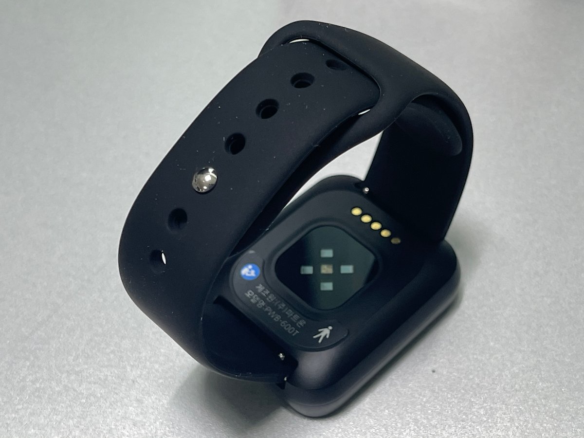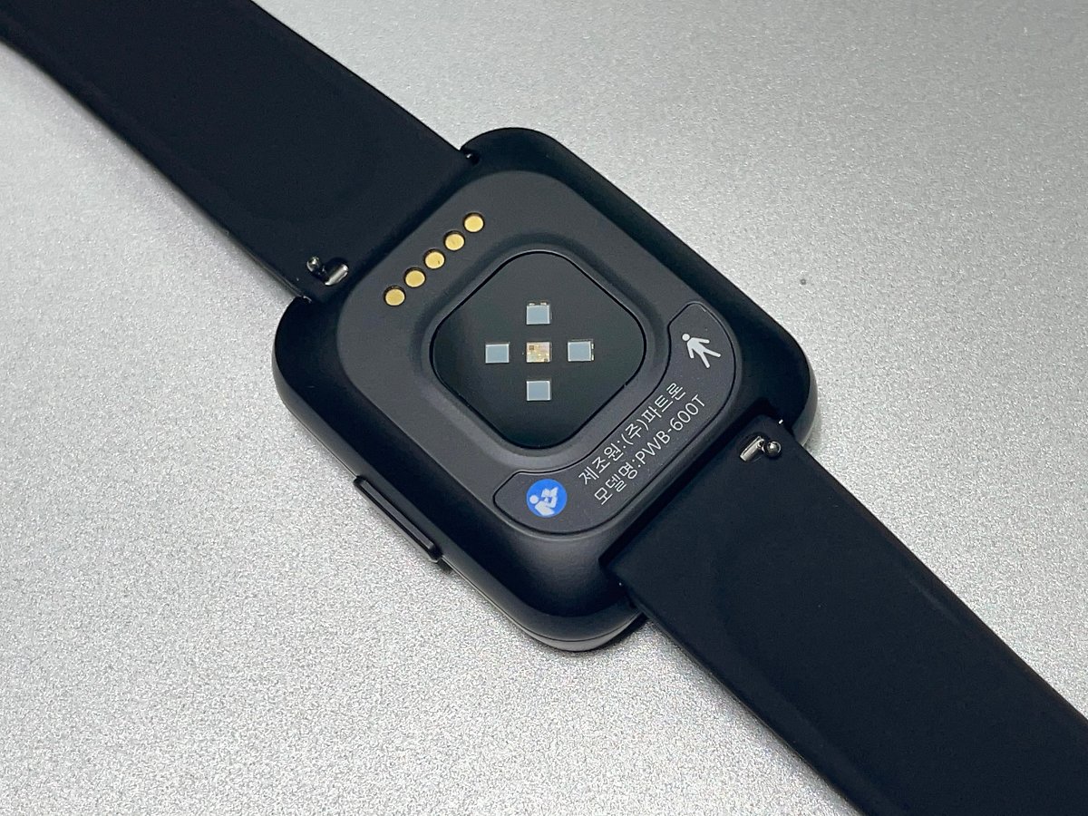 We Temp 밴드 뒷면에 충전 단자가 보이고 가운데 부분이 심박수 측정과 관련한 센서 부분인가 봅니다. 아~~~ 그리고 밴드 스트랩과 본체 부분의 결합 방식을 보니 표준 20mm 스트랩을 이용한 교체도 가능해 보입니다. 음... 집에 20mm 스트랩이 있을지 모르겠네요. 있으면 사용기 작성할 때 교체해 볼게요.