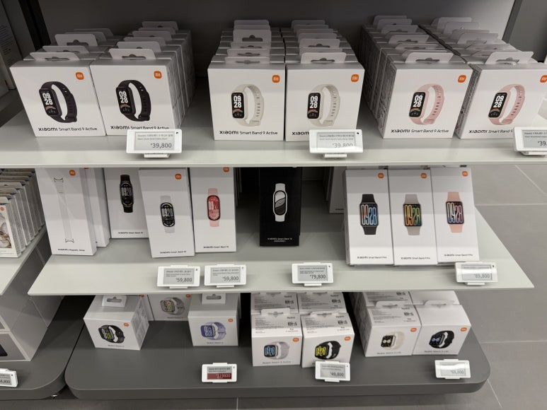 제가 사용하고 있는 스마트 밴드 9도 보이고 이번에 새로 출시된 샤오미 스마트 밴드 10도 보이네요. 오기 전에 이미 구입을 맘먹고 있었고, 아이들에게 생일 선물로 하나 받기로 하고 왔습니다.