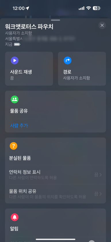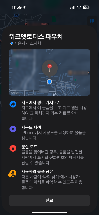 역시 안내 메시지 좀 더 확인하고 완료를 하고 나면... 이제 애플 나의 찾기 연결된 아이태그와 함께 각종 기능들을 활용하실 수 있습니다. 대표적인 기능들을 살펴보도록 할게요.