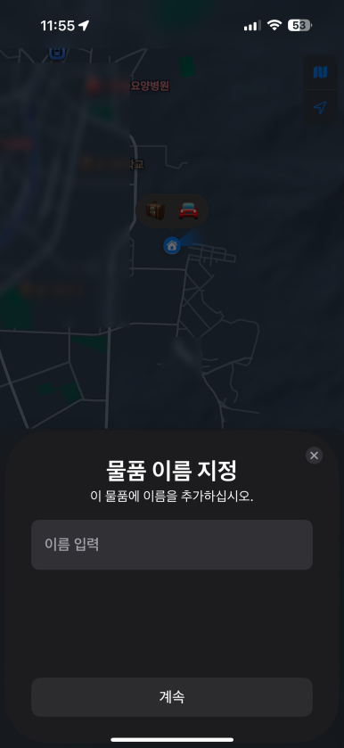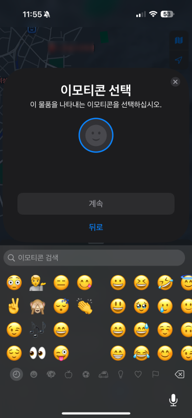 이후 과정은 애플 에어태그랑 거의 동일합니다. 물품 이름도 지정하고 대표하는 이모티콘도 선택하고, 안내 메시지 확인하고...