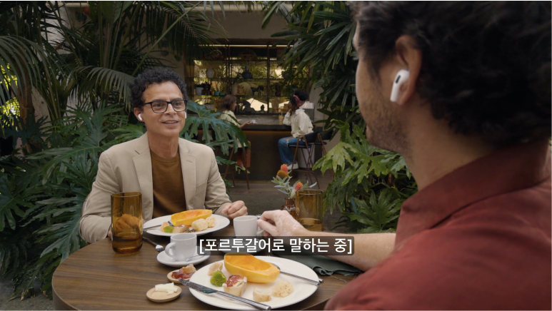 혼자서 에어팟 프로 3 이용하는 경우 말고도, 이렇게 두 명이 모두 에어팟 프로 3를 끼고 있으면서 서로 다른 언어로 대화를 하는 경우도 가능하겠군요. 요거 담에 해외 동료들이 오면 테스트해보고 싶습니다.