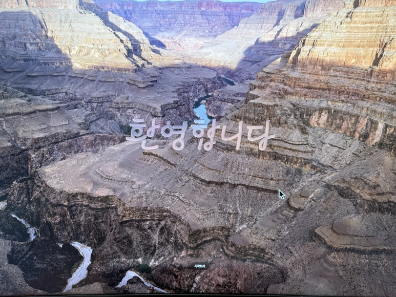 잉? 뭐가 이렇게 단계를 자꾸 거치게 만드는 건지? 마치 아이패드 업데이트하고 나서 환영합니다. 메시지를 보여주는 것과 비슷한 경험입니다. 근데, 움직이진 않습니다. 그냥 환영합니다. 그리고 끝입니다. 다국어로 바꿔가면서 보여주는 그런 방식은 아니네요. 아래쪽에 시작하기 누르세요.