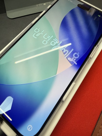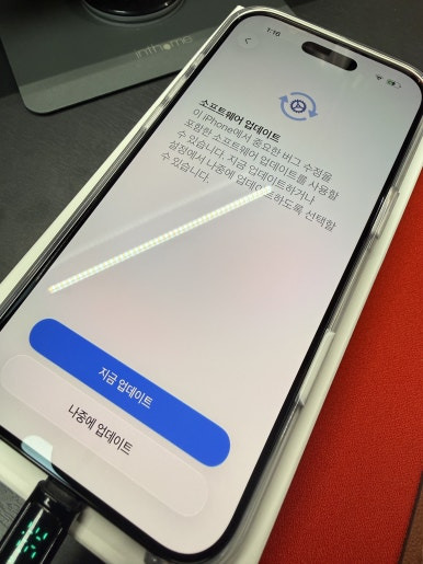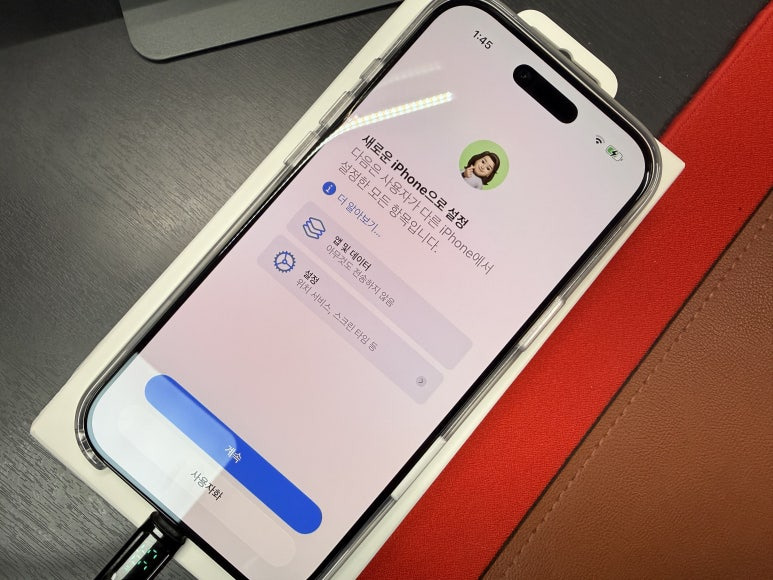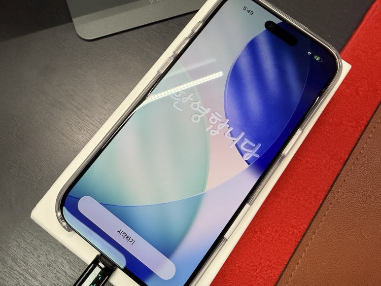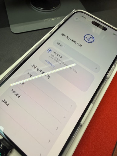 스티커 종이 제거하고 때맞춰 도착한 아이폰 에어 케이스를 씌워줍니다. 케이스 씌우다가 전원 버튼을 건드렸는지... 아이폰이 켜지고 있네요. 어차피 사용을 위해서는 충전도 해야 하고 하니... 이대로 바로 설정으로 들어가도록 하겠습니다.