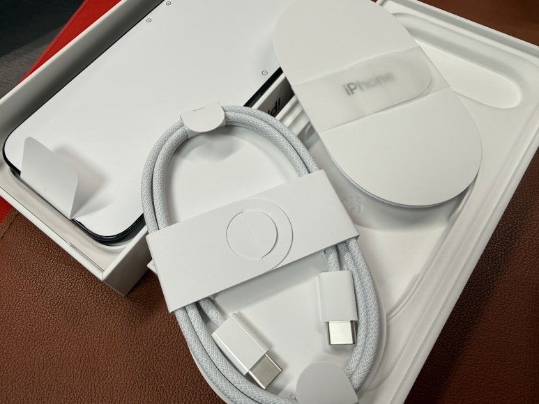 구성품은 요렇게 아이폰 에어 본체랑 C to C 충전 케이블(패브릭 재질의 케이블 같네요) 그리고 설명서 같은 종이가 포함되어 있습니다. 충전기 어댑터 제공 안 한 지 꽤 되는군요. 일단 지금 당장 사용하지 않을 거라, 그대로 보관하도록 하겠습니다.