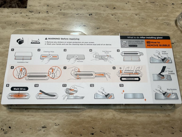 다행히 살살 밀어서 모두 제거가 되었네요. 이제 강화유리 보호필름도 부착 완료하였습니다. 본격적인 사용이 가능한 상황이 되었네요.