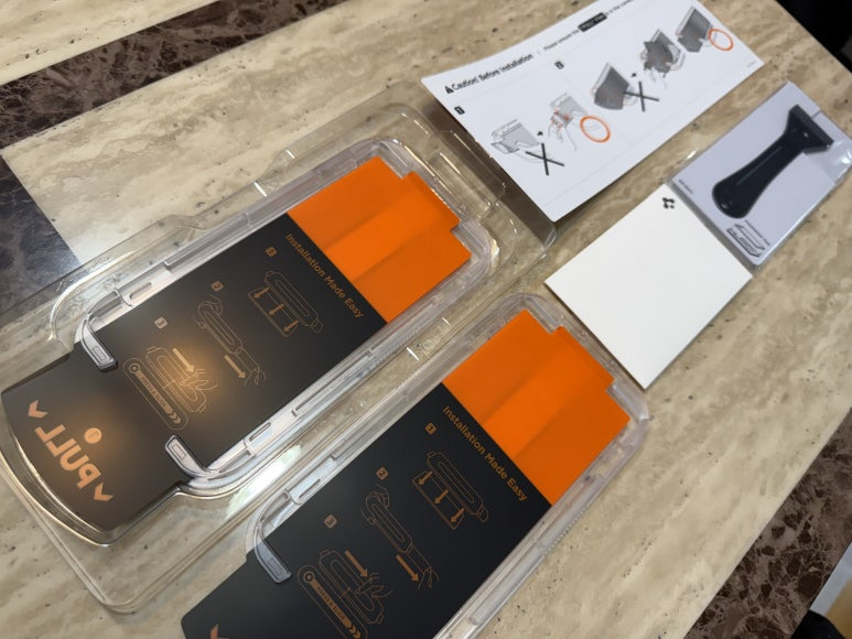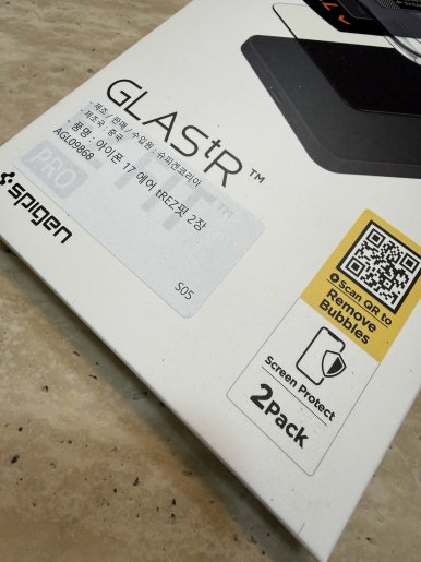 아이폰 에어 받고 바로 강화유리 보호필름도 부착해서 사용해야지요. 어떤 제품으로 할까 잠시 고민하다가 최근 여러 차례 구입한 슈피겐 제품으로 결정하였습니다. 부착 지원 도구가 있어서 안심하고 편하게 작업이 가능합니다.