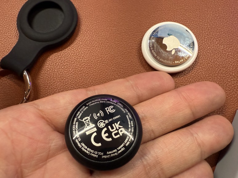 비닐 스티커를 제거하면 에어태그랑 비슷하게 소리가 날 겁니다. ㅎㅎ 에어태그는 흰 바둑알이고 유그린 스마트 파인더는 검은 바둑알이군요. 좀 있다 두 개 같이 놓고 크기랑 무게랑 질감도 비교해 보면 좋겠네요.