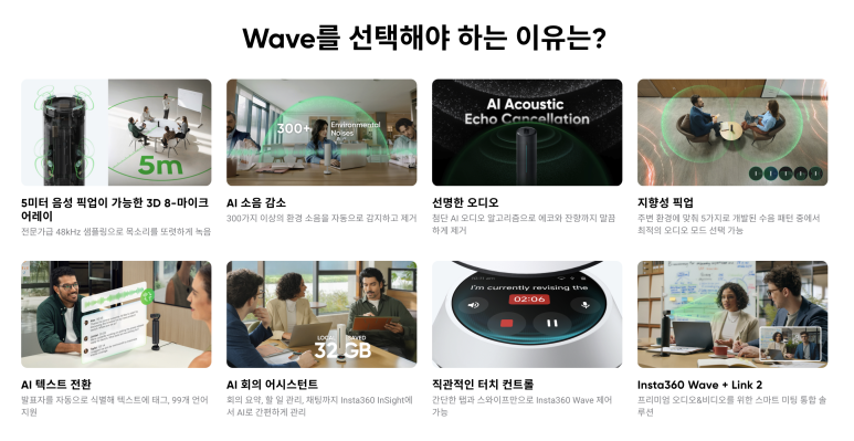 자금에 여유만 있다면 이미 질렀을거 같은데... 제가 아주 만족하면서 잘 사용하고 있는 웹캠이 Insta360 링크2라는 제품인데, 여기 같은 브랜드에서 마이크 제품이 나왔더라고요. Insta360 Wave라고 하네요. 지르고 싶어지는 그런 제품입니다.