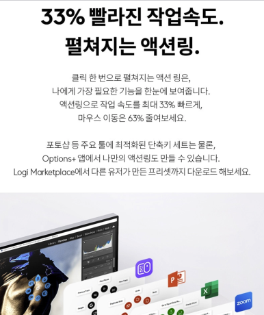 MX Master 4가 출시되고 아마도 홍보 활동을 하려고 요렇게 3S를 사용하는 저 같은 사람에게 MX Master 4를 소개하려고 Logi Options+에서도 강조를 하고 있나 봅니다. 역시 햅틱 피드백이랑 액션링 기능을 강조하고 있네요.