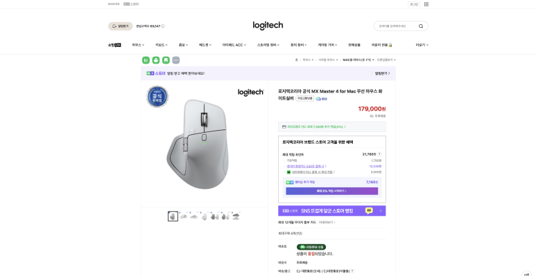 그래서 그런지... 이번 MX Master 4에서는 화이트 제품을 많이들 찾나 봅니다. 위에 때가 타는 문제가 소재 변경으로 해결이 되면서 많은 분들이 화이트를 구매하여 지금은 품절 상태고, 아래 블랙만 구입이 가능한 상황인가 봅니다.