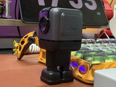 그리고 포트는 총 3개로 C 타입 포트 2개랑 A 타입 포트 1개로 제공이 되고 3개 합쳐서 총 65W 출력이라고 보시면 되겠습니다. ㅎㅎ 헤드폰을 쓰고 있는 로봇 같은 모양이네요.