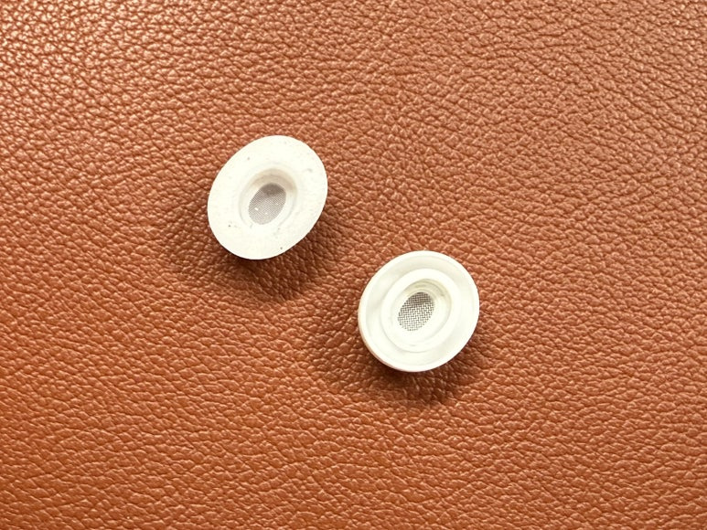안쪽 구조는 요렇게 차이가 납니다. 기본적인 메시 망구조는 동일해 보이는데, 폼팁이라 전체가 일체형으로 되어 있네요. 그리고 이어폰에 부착하는 부분은 살짝 타원형으로 되어 있습니다.