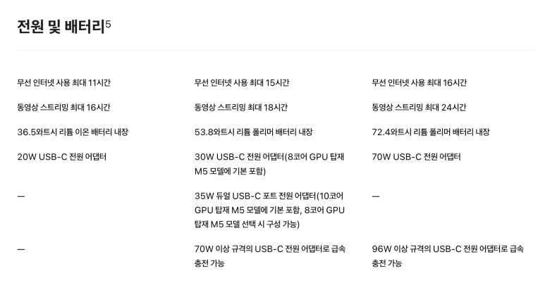 배터리는 16시간 버텨준다고 하고, 크기는 33.0cm라고 하니 대략 13인치 살짝 안될 듯하네요. Liquid Retina 디스플레이 적용한 13인치 모델이라... 맥을 처음 접하는 분들이나, 서브로 사용하려는 분들에게는 딱인듯합니다. 물론 애플 인텔리전스도 지원한답니다.