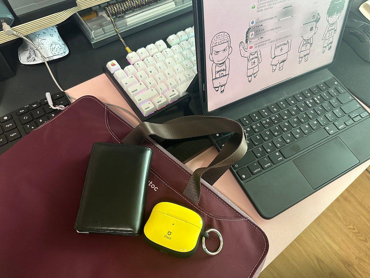 안녕하세요. 워크앳로터스입니다. 아이패드 혹은 노트북을 가볍게 들고 나갈 때 괜찮은 파우치입니다. 옆에 수납 공간이 또 있어서 충전기 어댑터나 마우스 혹은 저 같은 경우 명함지갑과 에어팟을 들고 나가면 딱이더라고요. 애초 목적은 제가 사용하려고 했었는데... 오늘 밤에 장여사에게 선물하였습니다. 제 방에 걸어둔 파우치를 보더니 본인 맥북 에어 넣고 다니면 좋겠다고 하더군요. 별 수 있나요. 상납해야지요. ㅎㅎ 오늘 이야기 주인공은 노트북 - 저 같은 경우 아이패드 프로 12.9형 제품 수납을 위한 파우치 이야기입니다. 오늘은 오후에 외부에서 가볍게 미팅이 있습니다. 후다닥 챙겨서 나가볼까요. 지난 2주가량 아주 잘 사용하고 있습니다. 보통은 무거운 노트북과 함께 이거저거 많이 들고 일하러 나가는 편인데,..